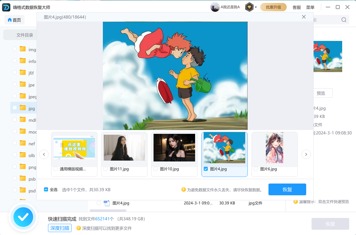Q4:恢复出来的照片有的是裂开的,或者打不开怎么办? A:文件碎片化或未被完全恢复。 这可能是由于原文件已被部分覆盖,或者卡有物理坏道。可以尝试使用软件自带的“深度分析”或“文件修复”功能(如嗨格式的高级选项)进行二次处理,或者寻找专修视频/图片的修复工具。